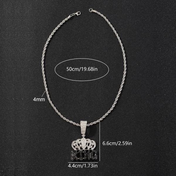 Fashion White Black Rhinestone Crown KING Pendant Necklace Hiphop 4mm Twist Rope Chain Necklaces For Men Jewelry Party Gifts Images |